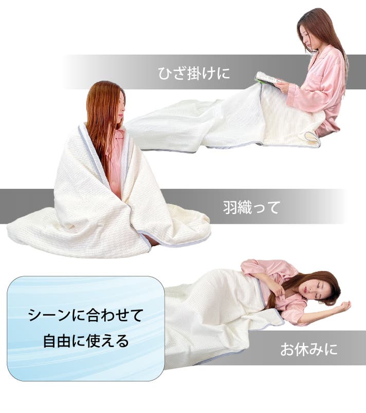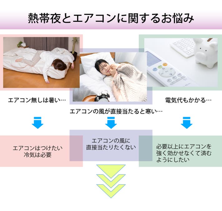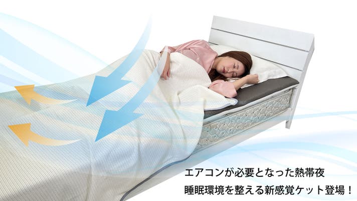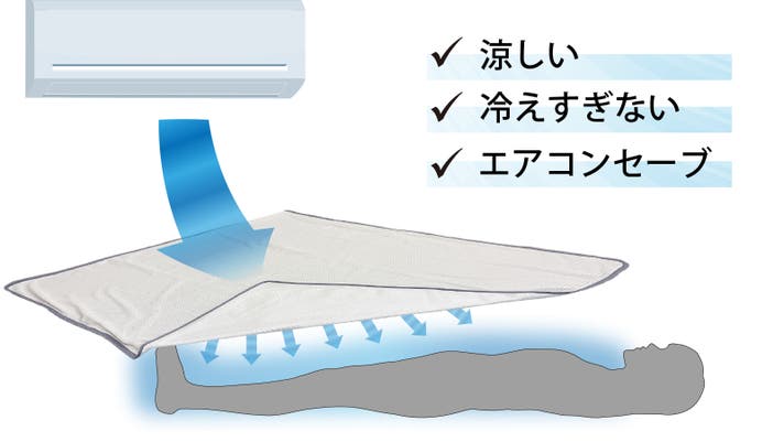 - 熱帯夜は一晩中使用するエアコン。冷気をやさしく取り入れ、こもった熱と湿気を放出する快適ケット