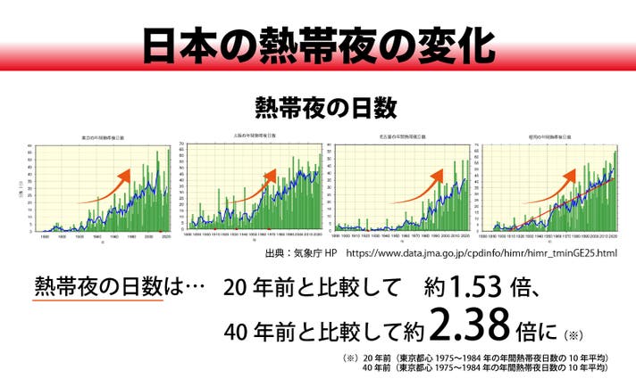 近年の夏の暑さは年々厳しさを増し、2024年には東京都心での熱帯夜(夜間の最低気温が25度以上の日)の日数は47日を記録し、夏季はエアコンの使用なしに過ごしにくくなってきました。