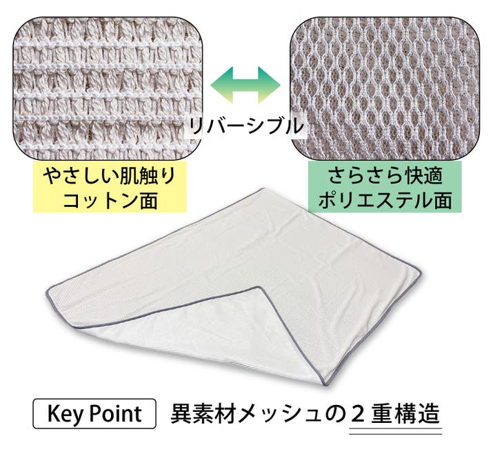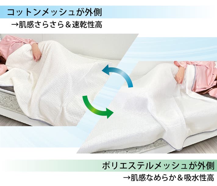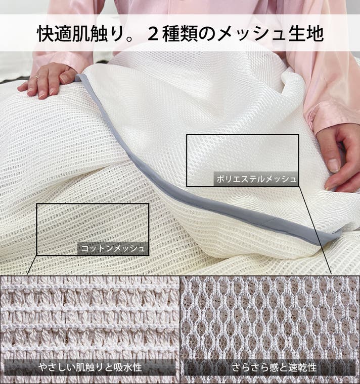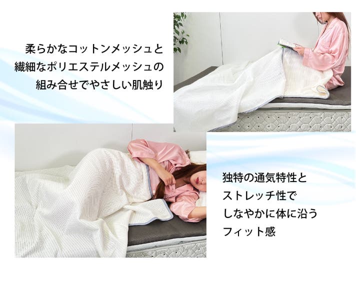 - 暑くて寝苦しい夜を快適にするメッシュケット第2弾!コットンメッシュ採用で肌当たりなめらかに