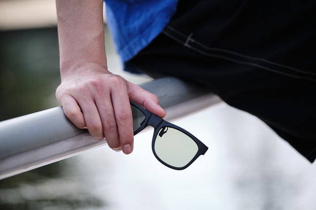 このアイテムの最大の特徴は、ブリッジ部分に仕込まれたブランド独自の「i インテリジェント光 センサー」が周囲の光量を感知し、レンズの濃淡を自動で調整してくれるというもの。