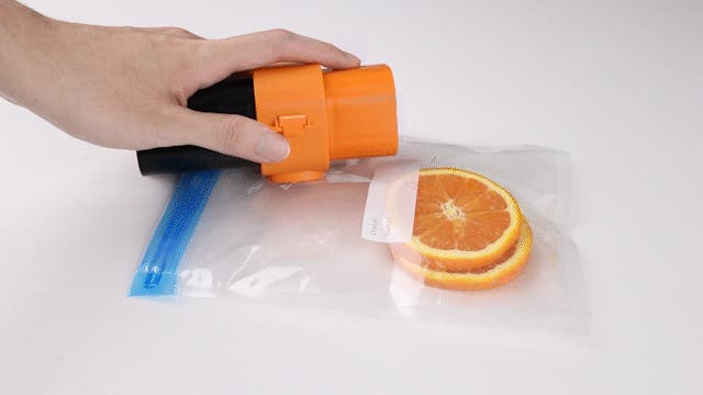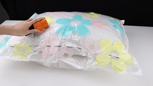 本体側面で空気抜き用アクセサリーを取り付けるだけで空気抜きモードに切り替えられます。衣装や布団の収納、荷物体積の縮め、食材の真空パック……「CF03」の空気抜き機能を使えば、簡単に以上の難問を解決できます。