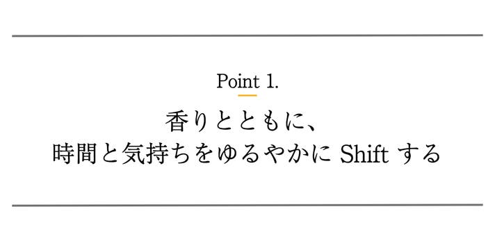 通知やアラームで無理に気持ちを切り替えるのではなく、香りとともに、ゆるやかに気持ちが『shift』していく。