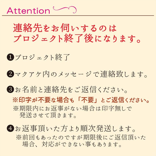 ※連絡先についてはマクアケメッセージでプロジェクト終了後お伺いします。
