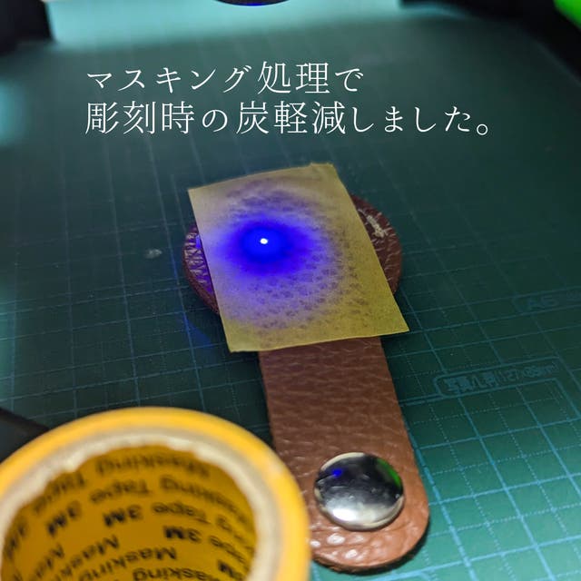 マスキング処理後にレーザー彫刻することにより炭が軽減しております。