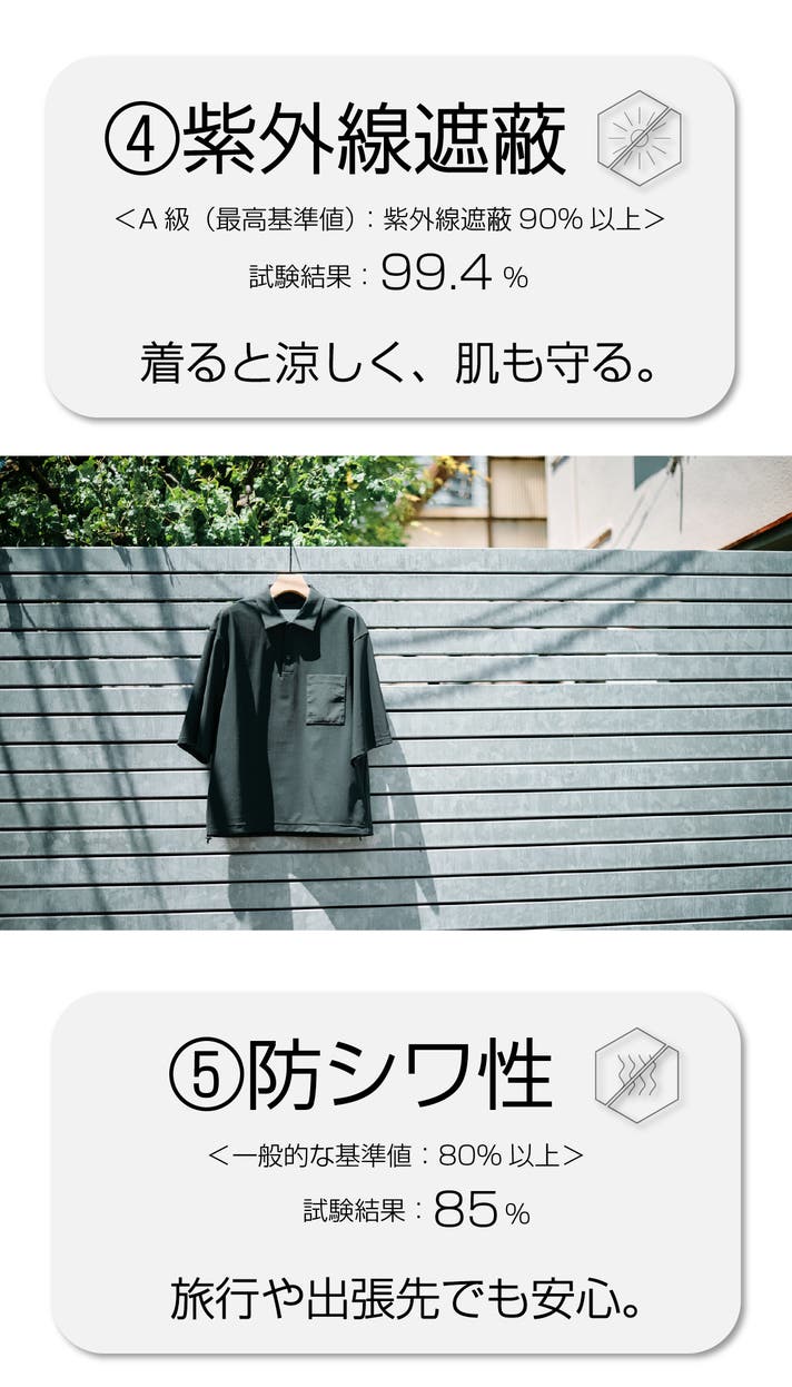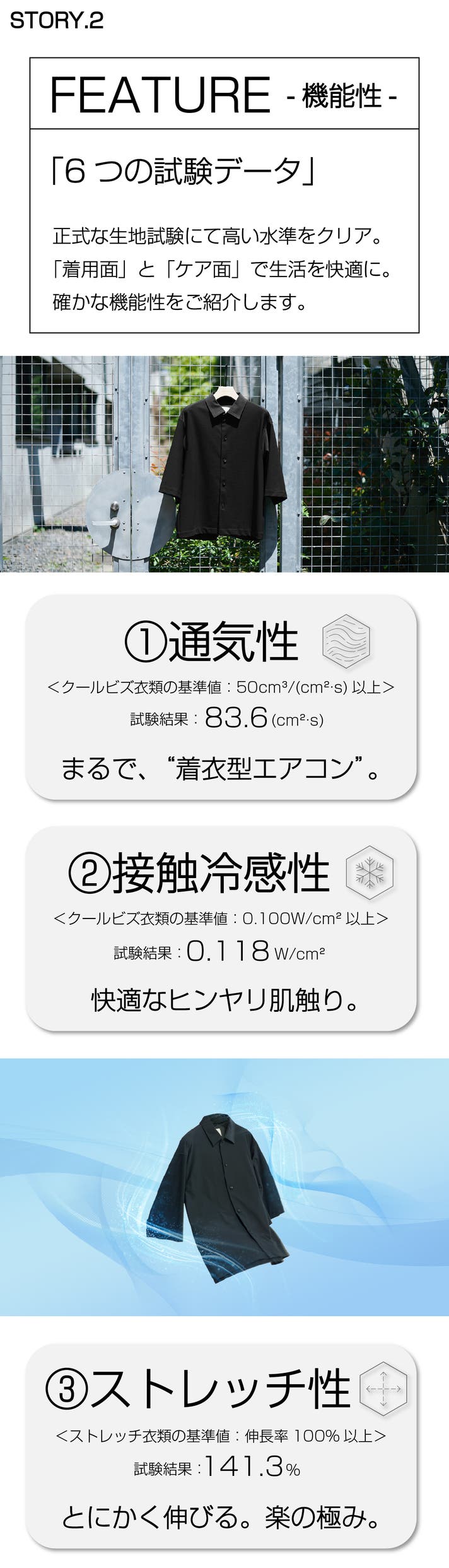 - 「生活が快適になる」秘訣。6つの試験データ<通気性/接触冷感/伸縮/UV遮蔽/防シワ/耐久性>