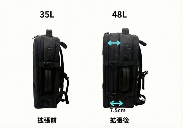 メイン収納(通常時):約 35L/ (拡張時):約 48L