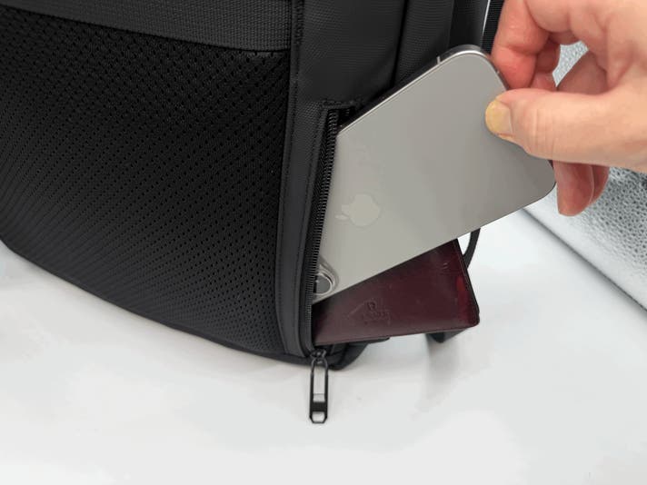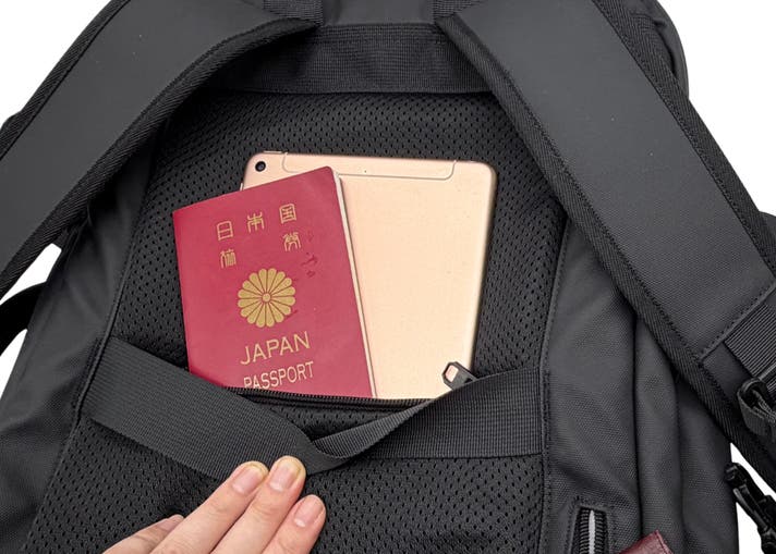 背負ったまま出し入れ可能なのでパスポートや財布の収納に最適です。