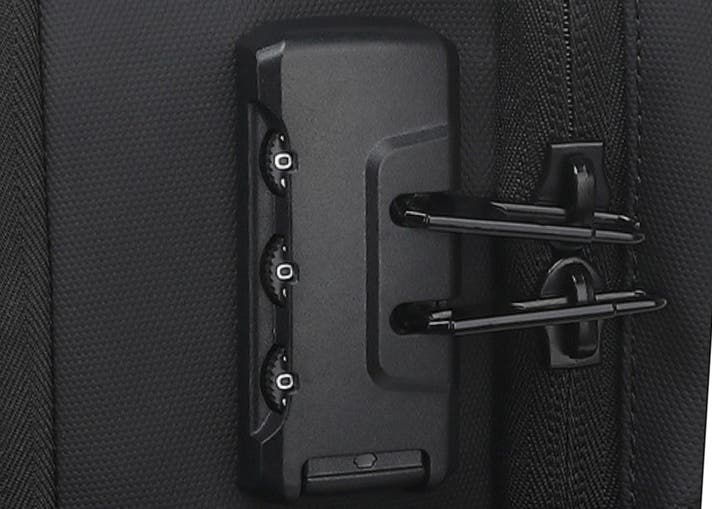 ファスナー同士をロックできる、3桁ダイヤル式ロックに対応。