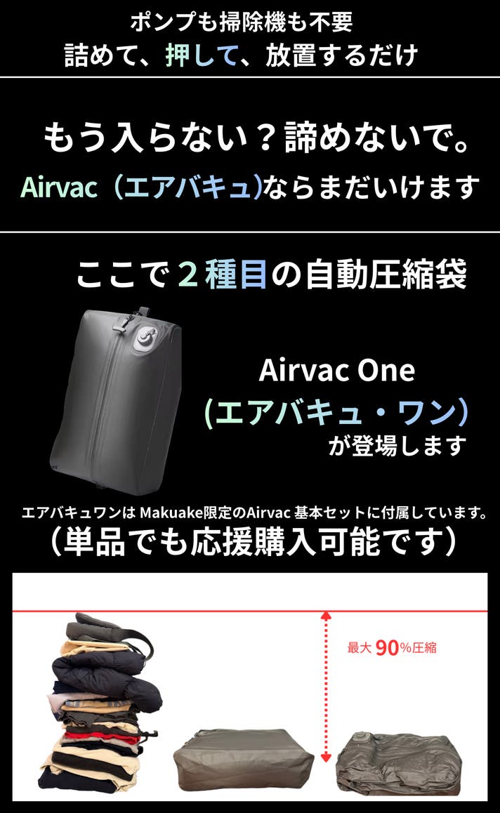 Airvac(エアバキュ)の凄さを実感いただけるフルサイズをセットにしました。初回生産分数量限定での特別価格です。