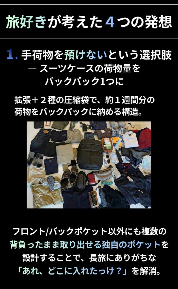 旅が人生を豊かにする。このバックパックがあれば、あなたの旅は一変します。