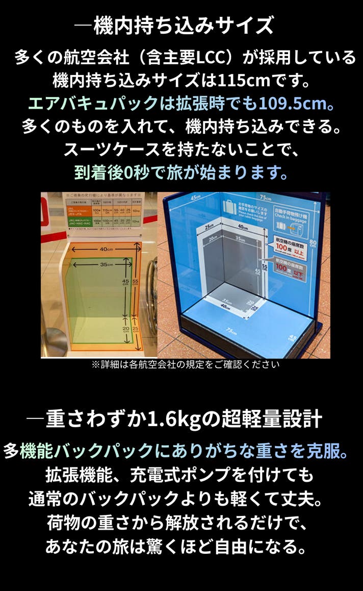 Airvacなら多くの航空会社の機内持ち込みサイズ範囲なので、預けない選択が可能です。