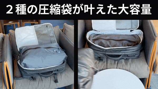 増えるかどうかわからない帰りの荷物のために大きなスーツケースを持つのではなく、増えたら圧縮+拡張機能を使えるので心配無用です。