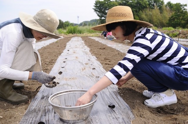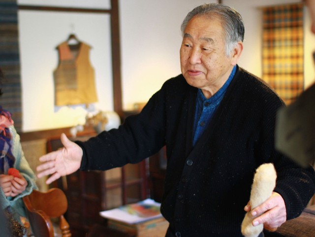 デザイナー達は、本藍染の布が作られるまでの過程を、綿の種を蒔くところから、糸紡ぎ・機織り・染めを体験しながら学びます。