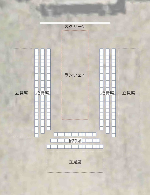✳︎ファッションショーの招待席に関しては下のイメージのように、一般の立ち見席の方とは異なり、椅子をご用意して、ランウェイの近くで見れるように、場所を振り分けさせていただきます。