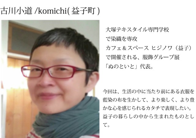 ・冊子内容は、藍染や日下田藍染工房について、衣装のアーカイヴ、AISOMEについてを予定。