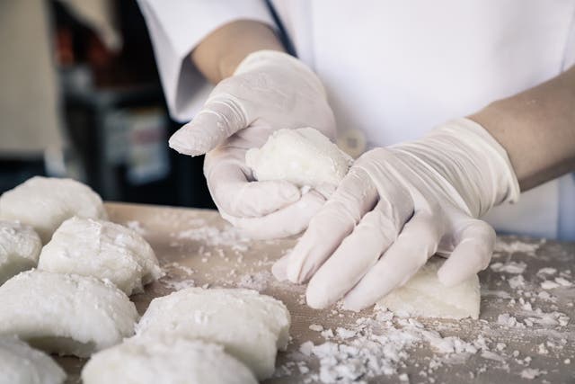 すべての段階に老舗の技術が活かされ、最後の一滴、まさに極限まで水分の含まれたお餅ができあがります。お餅の段階ですでに、まるで羽が生えているように軽くてふわふわの状態に柔らかい仕上がります。