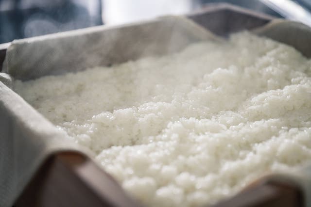 まずはパン種を作る前に、パン種に用いる生餅の仕込みから始まります。まるまる一夜以上のあいだ水に浸漬させてから、翌日に餅米を蒸かし、さらに百年以上伝わる秘伝の製法で餅を搗(つ)いていきます。