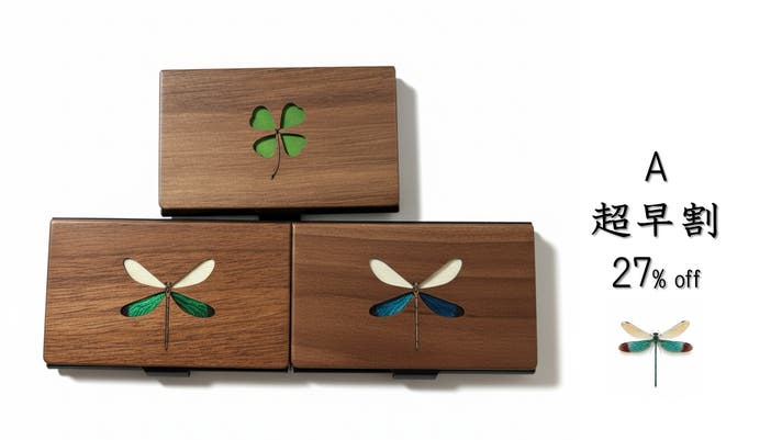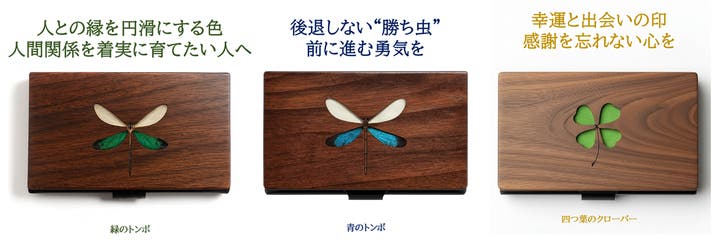 ・緑色トンボ、青色トンボ、四つ葉のクローバーの3種類からお選び頂けます。