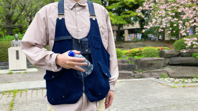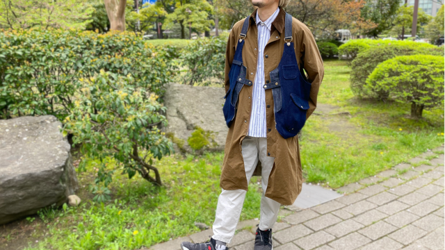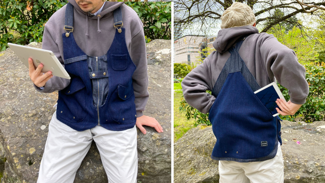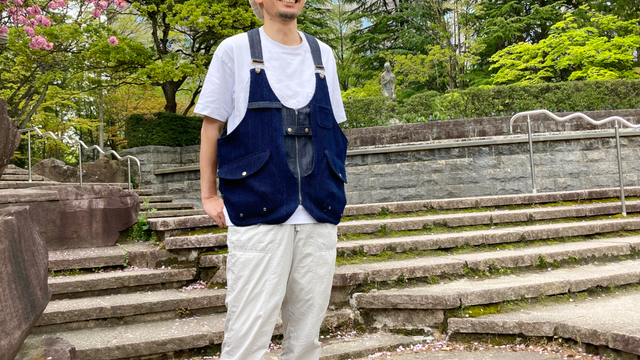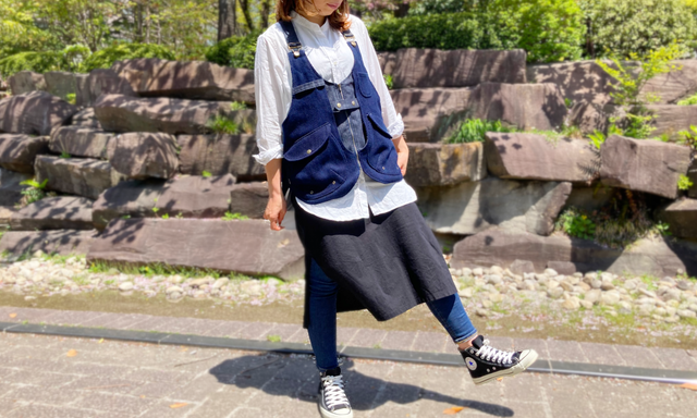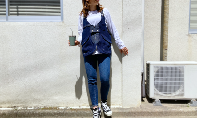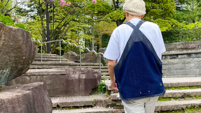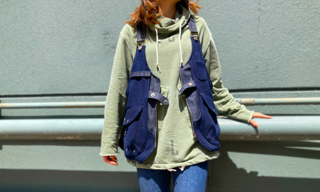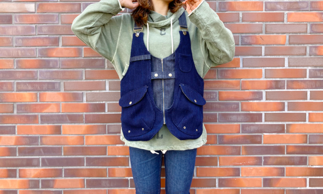 「着るかばん」とも言われるほどの使い勝手の良さと、カジュアルな洋服への取り入れやすさが人気の理由です。そして藍染の質感は、カジュアルなスタイルにも高級感と上質感をプラスしてくれます。