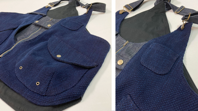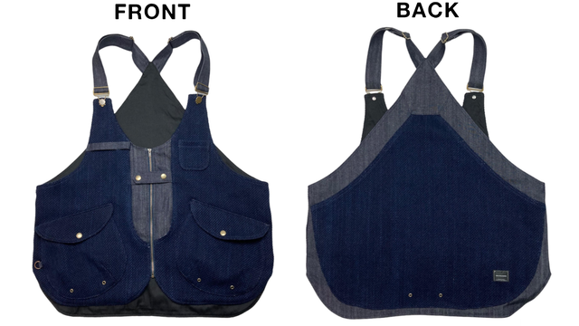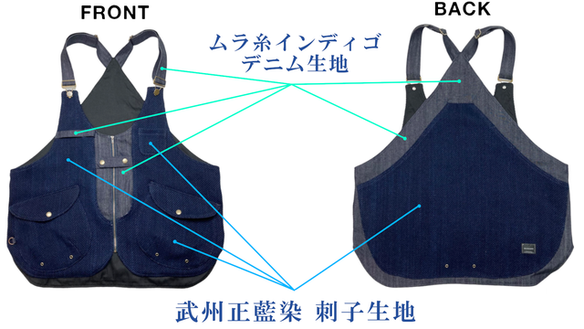 今回のベストに使用する生地は、ブランド藍染である武州正藍染刺子(ぶしゅうしょうあいぞめさしこ)の二重(ふたえ)生地を使用しております。