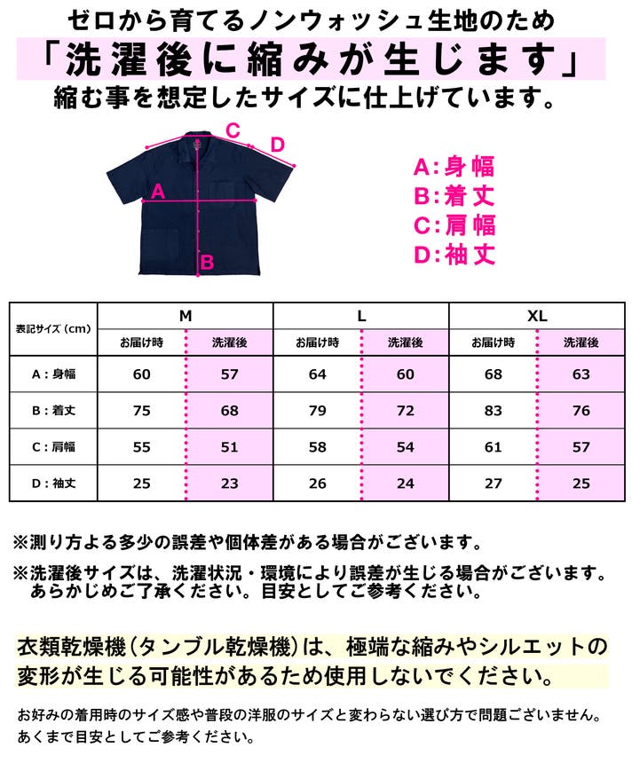 ※予め縮みが出ることを想定したサイズに仕上げています。