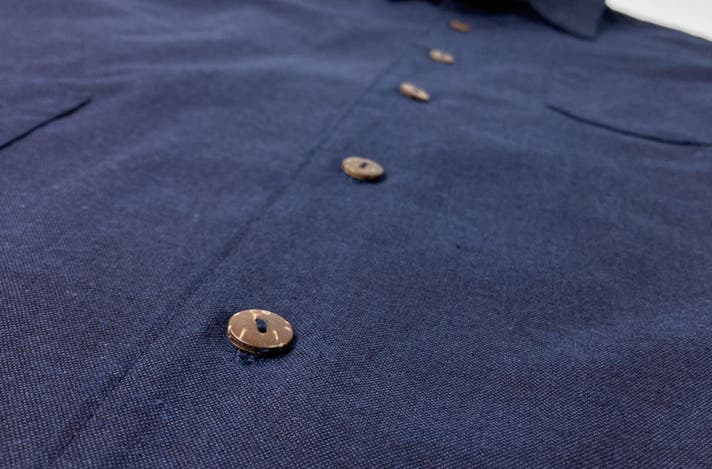 ヤシの実を削り出して作ったボタン。 アロハシャツと言えばココナッツボタンというくらい定番となっていますが、 自然な風合いが藍染アロハシャツにも相性抜群です。