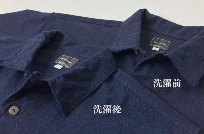 その糸で織った生地をゼロから経年変化を楽しめる”ノンウォッシュ”加工のままシャツに仕立てました。