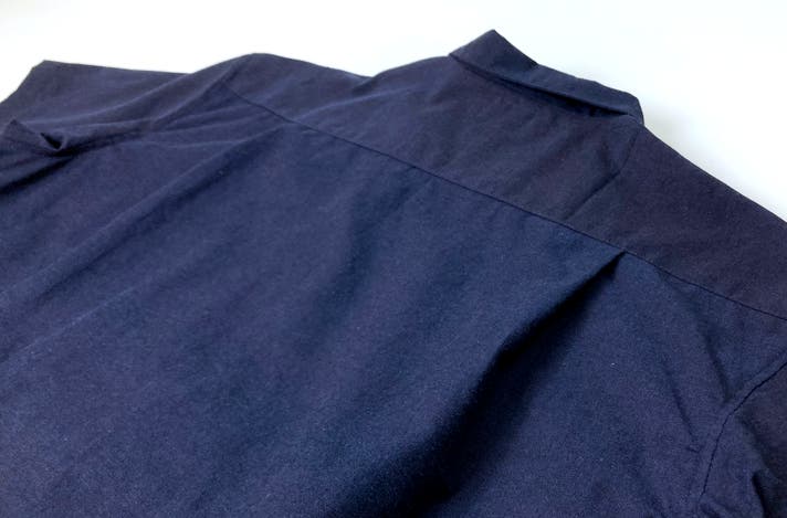 背中にはサイドプリーツ(プリーツが左右に2個所)が入っており、肩まわりが動かしやすい仕様になっております。