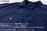 アロハシャツに使用する武州正藍染は、藍の葉からとった染料を発酵建てで発酵させて染めるのが特徴で、染の手法は糸の段階で染める糸染めと、布にしてから染める型染の二方法があり、商品で使用している生地は糸染の生地を使用します。