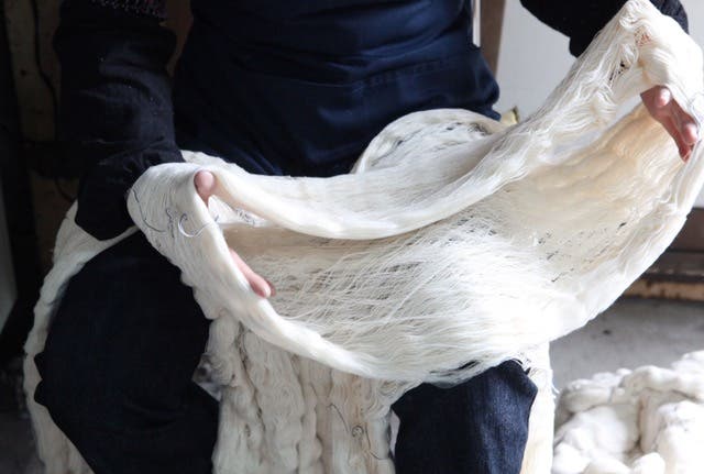 手作業で糸をほぐし、染めの状態を目で確認しながら染められます。