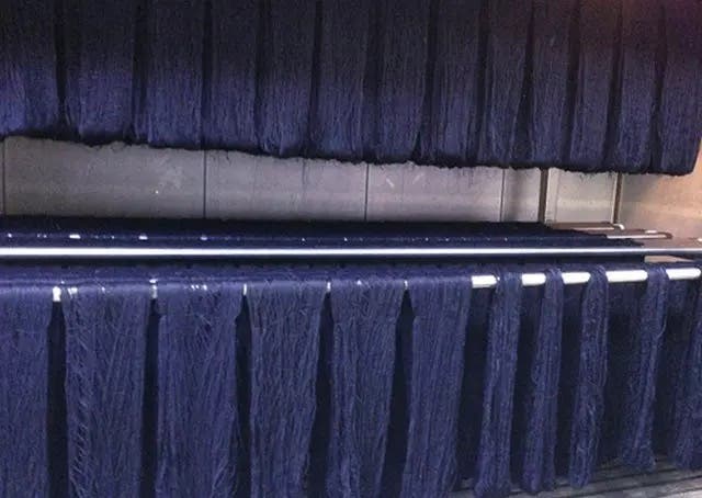 武州正藍染の糸染めは、糸を染め上げてから織るため使用していくごとに「青縞」と呼ばれる、美しい自然のストライプが生まれます。