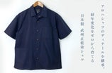 開襟(かいきん)の半袖シャツにココナッツボタンを使用し世界的に歴史のあるアロハシャツのディテールを取り入れたデザインです。