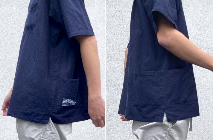 日常でも着こなしやすいシンプルなデザインでありながら藍染の質感は高級感と上質感をプラスしてくれます。