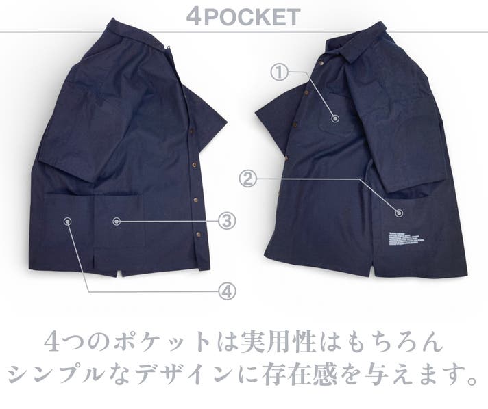 左胸に1箇所、右下部には大き目なポケットが2箇所、さらに左下後ろに1箇所ついているので、バッグを持たない男性にも実用的で必要な機能を装備しています。