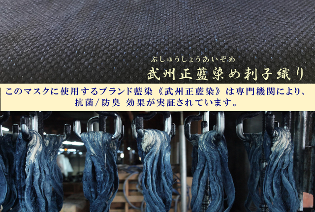 特に、このマスクのこだわりであるブランド藍染【武州正藍染】は専門機関の検査により、抗菌・防臭効果が実証されています。