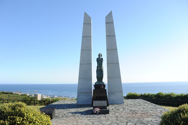 4年前に、まず一本のあじさいの植栽に取り組み、現在約500本に増えましたが、長期計画として北海道内の廃線跡、やがては日本全国の廃線跡を紫陽花色に染め上げたいとの思いがあり、大規模な計画の達成にはスピード感も必要です。「地域の力だけでは達成困難と思える事業も、多くの人の力を合わせることで可能になる」ことから、出来るだけ広い範囲のみなさんに協力を求めるための手段として最適だと思っています。(写真は肉眼でロシア・サハリンを望む稚内市・稚内公園「氷雪の門」です)