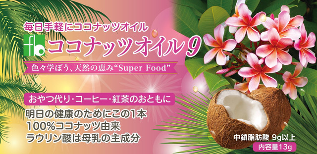 新発売の「ココナッツオイル9」は、甘い香りで飲みやすく、