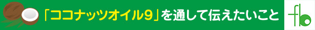 「FBココナッツオイル9」を発売するにあたり、たくさんの方に中鎖脂肪酸の必要性を知ってほしい。そして意識して生活に取り入れていただきたい。「飲みやすく」「安心・安全な」ココナッツオイルをたくさんの方に使っていただきたい。認知症の原因となる成人病を減らし、健康・長寿の国を作るべく貢献したい。それが私たちの願いです。