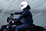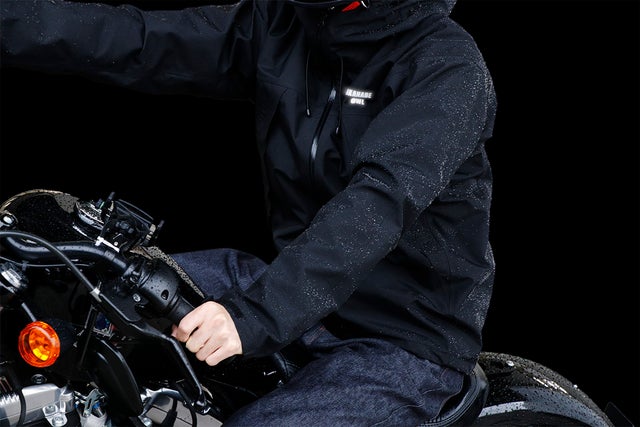 - 折りたたんで詰めた袋から出して着るだけで突然の雨でもガード。バイクに乗っても普段着でも使用可能