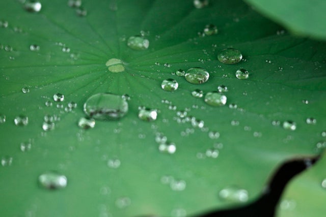 この超撥水力は蓮の葉が水を弾く構造になっていることに着想を得ています。