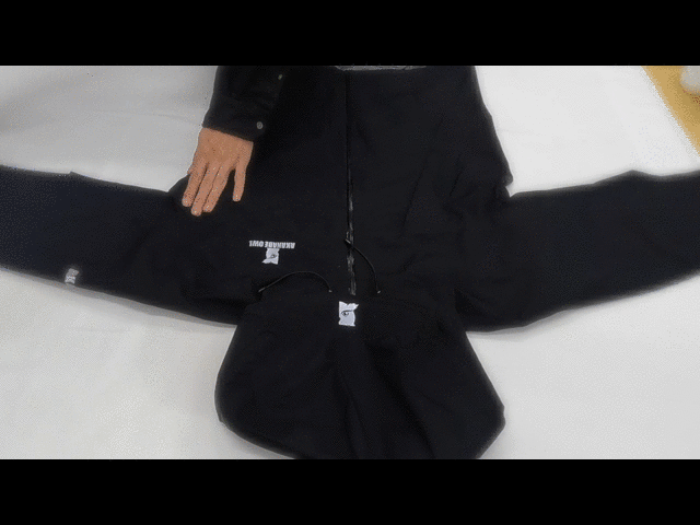 まずは袖を中心に向けて小さく折りたたんで細くします。