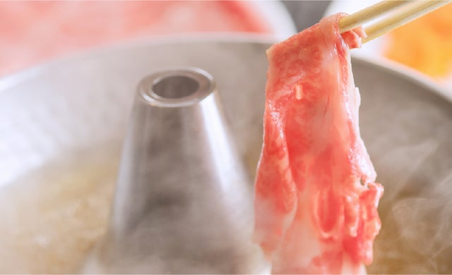 ❸キノコを召し上がった後は、お肉を“しゃぶしゃぶ”してお召し上がり下さい。