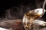 鰹節・鯖節・利尻昆布などを使った『鰹一番出汁』を毎朝作っております。その豊潤な味と香り、そして濁りのない上品な黄金色の出汁は塩分がほとんど入っておらず、スッキリとした味わいで素材本来の旨味をしっかり生かしながら優しさの中に深みがあります。