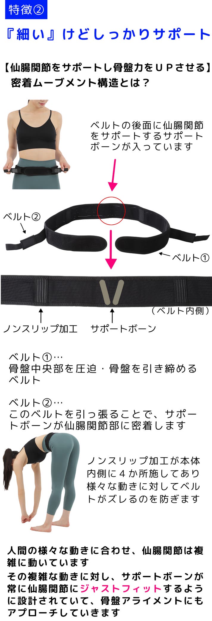 - 【細い】けどしっかりサポート。骨盤力をUPさせる『密着ムーブメント構造』