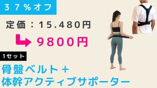 【37%OFF】骨盤ベルト+体幹アクティブサポーター 1セット