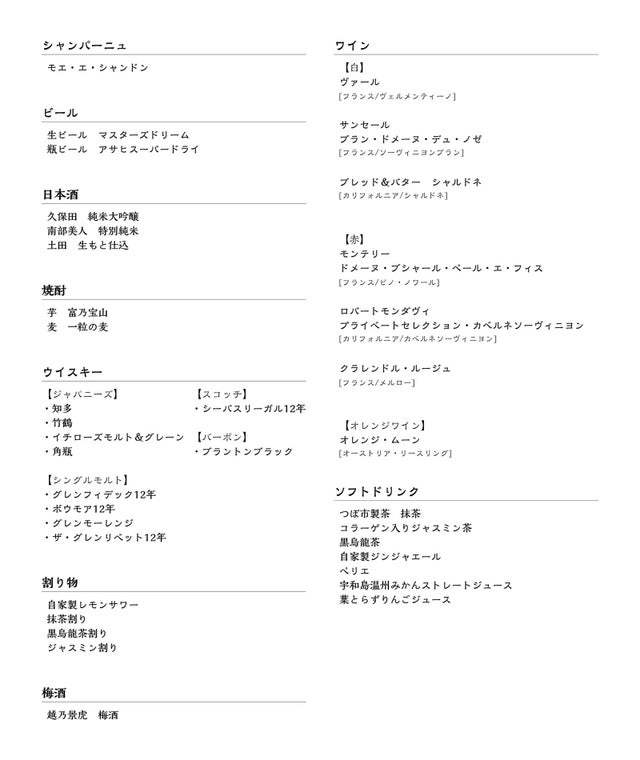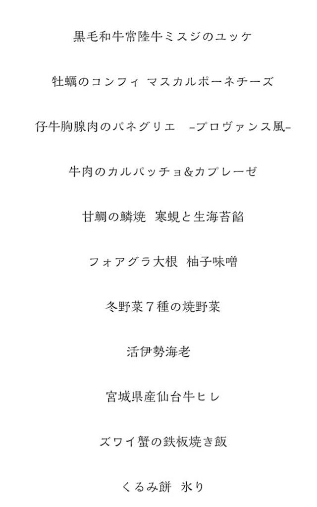 ※上記はあくまでも一例です。季節や仕入れによって内容が変更する可能性がございます。
