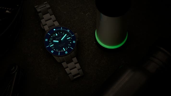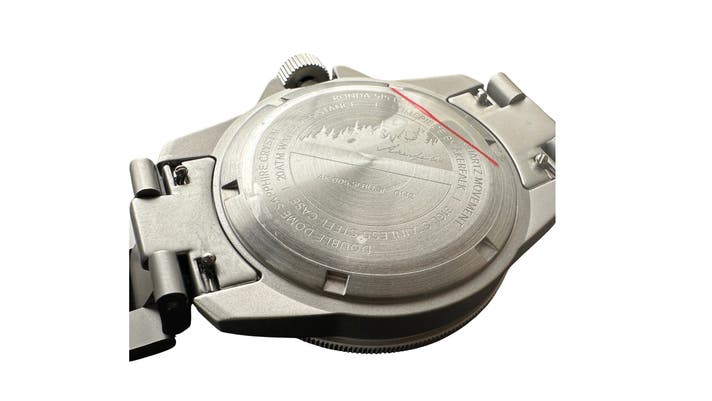針とインデックスには、スイス製Super-LumiNova® 夜光塗料を使用。長い夜でも、静かに確かな光を放ちます。その柔らかな輝きは、冒険の道しるべとなり、暗闇の中でも確実に時を読み取ることができます。