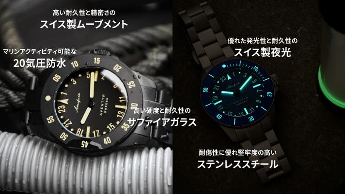 スウェーデン語で「冒険」を意味するÄventyrは、すっきりとした機能的なデザインが特徴で、使う人の冒険心とライフスタイルを考え抜いて設計された腕時計です。
