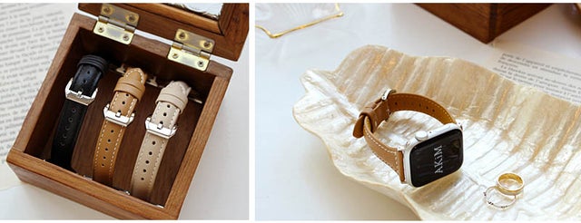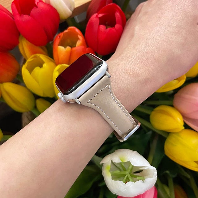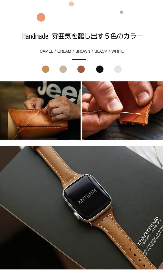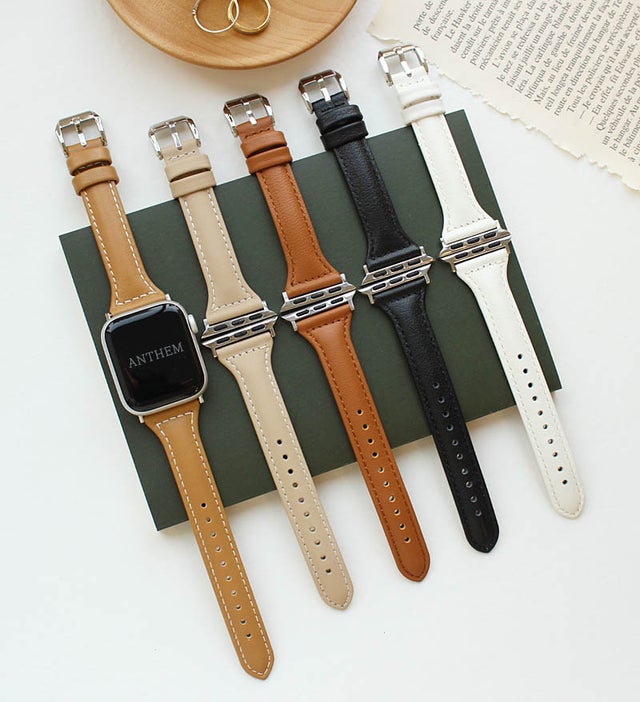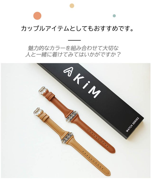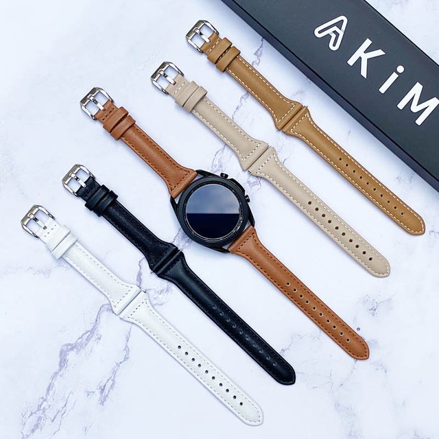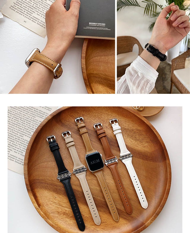 便利なスマートウォッチを革のバンドでスタイリングしてみましょう。AKIMのレザーバンドは、プレミアム牛革と合成皮革で作られています。目を引くほどの高級感あふれる仕上がりとステッチ縫いで、細かいところまで心を込めて製作しました。