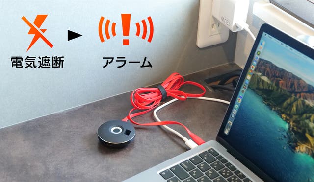 そのためノートPCやコンセントから【AlarmID】へ給電し、ケーブルを外さなければ移動できない状態を作ればOK。